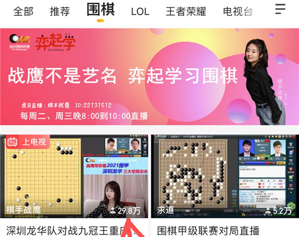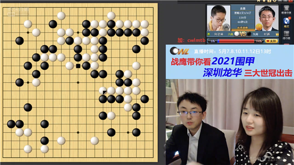 今日虎牙直播,職業(yè)女棋手戰(zhàn)鷹繼續(xù)現(xiàn)場講解點(diǎn)評(píng)深圳龍華隊(duì)對(duì)局情況,觀看人數(shù)又創(chuàng)新高,直沖30萬大關(guān)。賽后,“龍哥”時(shí)越來到直播室,與迷們一起分享了對(duì)局過程中的心路歷程。戰(zhàn)鷹作為圍棋知名主播,是深圳龍華隊(duì)網(wǎng)上直播合作人,為龍華隊(duì)帶來了一波接一波的人氣,直播室十分熱鬧!喜歡的朋友接著看吧!不過,大家要記得:明天圍甲休息一天,接著三天會(huì)連播。