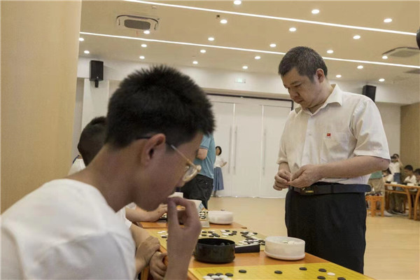 昨天是比賽休息日,深圳龍華隊(duì)教練羅洗河九段指導(dǎo)當(dāng)?shù)貝?ài)好者。