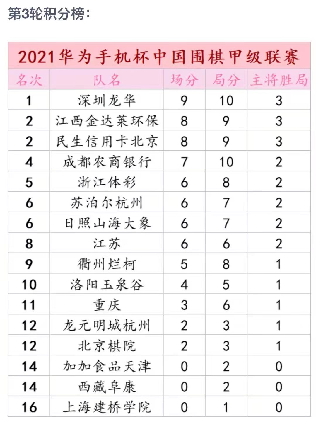 圍甲賽程預(yù)告:2021華為手機(jī)杯中國(guó)圍棋甲級(jí)聯(lián)賽5月11日第四輪深圳龍華vs衢州爛柯