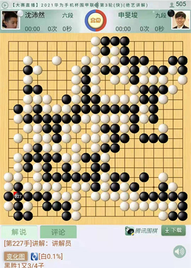 今日比賽中,二臺(tái)的主將時(shí)越先贏,是盤(pán),時(shí)越執(zhí)黑主將對(duì)陣姜東潤(rùn)。行至中盤(pán),白棋侵消上邊黑棋模樣,黑棋攻擊手法略嫌急躁,局面復(fù)雜。戰(zhàn)斗蔓延到左上時(shí)候,白棋處理眼位不當(dāng),導(dǎo)致左上白棋需要多花一手棋做活。被黑棋中央搶先動(dòng)手吃住大龍。隨后,四臺(tái)快棋外援申旻埈繼昨日后又一次險(xiǎn)勝,可謂好運(yùn)連連。本局申旻埈執(zhí)黑對(duì)陣商借到西藏隊(duì)的沈沛然。白棋開(kāi)局至中盤(pán)超水平發(fā)揮,局面一度白棋勝勢(shì)。官子時(shí)候黑棋在白空里試應(yīng)手,白棋讀秒中忙中出錯(cuò),下出緩手應(yīng)對(duì)失誤,被黑棋便宜了接近十目棋,導(dǎo)致局勢(shì)逆轉(zhuǎn)黑棋幸運(yùn)獲勝。