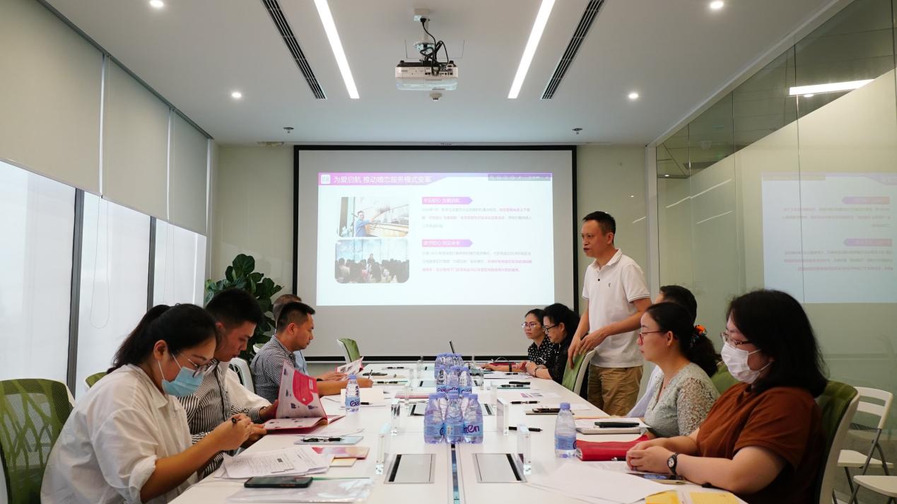 ▲南山區(qū)“十大創(chuàng)新工匠”評審委員會專家在聽取珍愛網(wǎng)CEO陳思作匯報