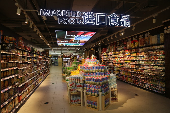 據(jù)超市負責人介紹,此店經(jīng)營商品數(shù)超2萬多種,在陳列設計上按照商品類型進行了區(qū)塊劃分,有“進口食品中心、有機健康中心、美酒薈、個人護理中心、面包坊”等多個品類中心。售賣800余種來自多個國家的食品,超過400種奶制品、米、面粉、雜糧、調(diào)味品及600種酒品。超市主打“生鮮”概念,有超過100種來自生鮮基地的果蔬、凍禽、海產(chǎn)、冰鮮,而“基地直采”的商品多數(shù)直接來自國家重點扶貧縣的農(nóng)戶手中。