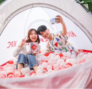 4月21日-4月22日,肯德基在全國17個城市指定的17家餐廳搭起了野營帳篷,吸引了眾多老鐵加入體驗。
