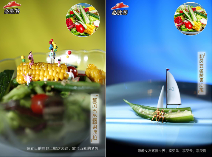 在深圳,必勝客更是腦洞大開,在最新的2018春季菜單,用迷你人偶結(jié)合旅游的場景進行創(chuàng)意拍攝。天馬行空的想象,獨特的視角,妙趣橫生,讓人領(lǐng)略美妙“風(fēng)景”的同時,不禁食指大動。
