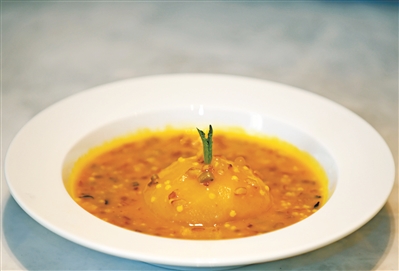 順德聯(lián)塑萬怡酒店的主廚馮耀滿推出一款非常健康的創(chuàng)新菜——南瓜五谷雜糧扒蘋果。中餐的材料西式的做法,不但營(yíng)養(yǎng)均衡,賣相還相當(dāng)小資,養(yǎng)生又有品味。