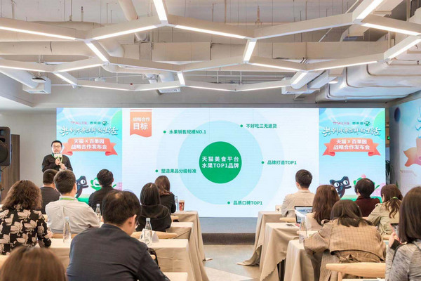 見(jiàn)圳客戶端·深圳新聞網(wǎng)2019年11月30日訊 11月29日,天貓與百果園在深圳阿里中心舉行戰(zhàn)略合作發(fā)布會(huì),天貓大食品總經(jīng)理無(wú)齡、大食品果蔬冰運(yùn)營(yíng)負(fù)責(zé)人思豪,百果園集團(tuán)副總裁焦岳、電商負(fù)責(zé)人孫鵬出席會(huì)議并發(fā)表演講。本次發(fā)布會(huì)以“共創(chuàng)水果生鮮好生活”為主題,雙方計(jì)劃通過(guò)優(yōu)勢(shì)互補(bǔ)和資源整合,從水果到生鮮進(jìn)行全面深入的戰(zhàn)略合作。