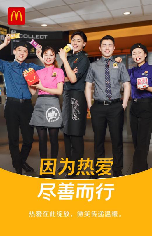 麥當(dāng)勞于1990年進(jìn)入中國(guó)內(nèi)地,從深圳第一家餐廳發(fā)展到今天的3,500多家餐廳,陪伴一代又一代顧客度過(guò)歡樂(lè)時(shí)光。麥當(dāng)勞中國(guó)首席執(zhí)行官?gòu)埣乙鸨硎荆骸叭苣曛H,麥當(dāng)勞發(fā)布‘因?yàn)闊釔?ài),盡善而行’品牌理念,勉勵(lì)我們堅(jiān)守初心,用熱愛(ài)創(chuàng)造更多可能,用善意帶來(lái)更多美好。我們?cè)谥袊?guó)內(nèi)地取得的成績(jī),離不開(kāi)員工、供應(yīng)商和被特許人的攜手努力。‘熱愛(ài)’始終流淌在我們每個(gè)人的血液里,專(zhuān)注為顧客打造盡善盡美的用餐體驗(yàn);而‘善’一直指引著我們的發(fā)展方向——我們用嚴(yán)苛的標(biāo)準(zhǔn)對(duì)待每一份餐食,為顧客提供新鮮安心的美味;我們運(yùn)營(yíng)綠色餐廳、優(yōu)化綠色包裝,通過(guò)一系列綠色行動(dòng)讓麥當(dāng)勞成為‘美麗中國(guó)’的一部分,讓金色拱門(mén)更加閃閃發(fā)亮。”