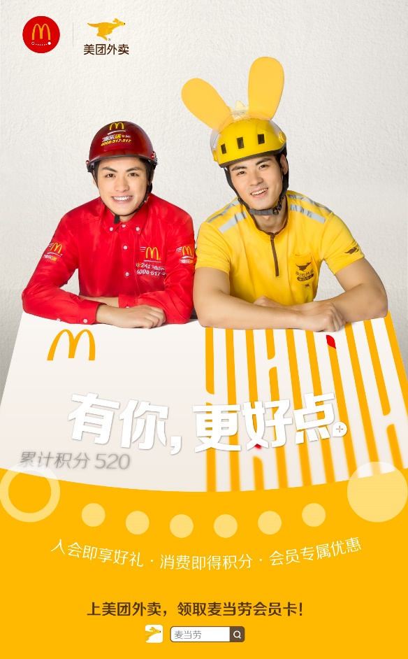 麥當勞中國宣布與美團外賣實現(xiàn)了會員積分打通,超過1.2億的麥當勞會員可以在美團外賣點購麥當勞后,累積麥當勞會員積分,并享受會員福利。