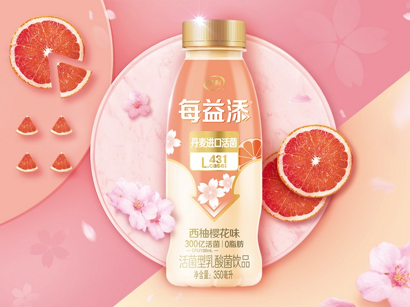 “西柚和櫻花的結(jié)合,花果搭配清新豐富。包裝上,在整體保持每益添品類視覺基調(diào)的一致性的基礎(chǔ)上,添加了花果設(shè)計元素。視覺顏色上傳達(dá)了櫻花和西柚的混合特征,櫻花的粉和西柚的橙結(jié)合,元素搭配上采用‘小即是多’的原則,幾朵櫻花一片西柚表現(xiàn)了每益添‘快樂簡單無負(fù)擔(dān)’的愿景。”由18位產(chǎn)品研發(fā)和市場調(diào)研方面的專家組成的評委團,圍繞感官體驗、理念創(chuàng)新、消費者溝通與整體感受等維度,對每益添西柚櫻花創(chuàng)新口味飲品進行了評鑒,并給出這樣的評審語。作為伊利旗下唯一專注低溫活性乳酸菌飲品的品牌,每益添始終堅持助消化的功能打造,其每100毫升富含300億的丹麥進口專屬活菌,從2018年首創(chuàng)百香果創(chuàng)新口味至今,屢創(chuàng)低溫活乳新佳績,引領(lǐng)低溫活乳發(fā)展新潮流。