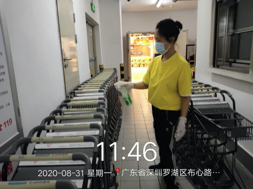 場所上,消毒設備每隔4個小時會有一次擦試,賣場地板會有每隔2個小時一次消毒。每個檔口工作人員使用的器具,每隔2個小時也有一次消毒。確保整個購物場所的安全。 (常軍平 )