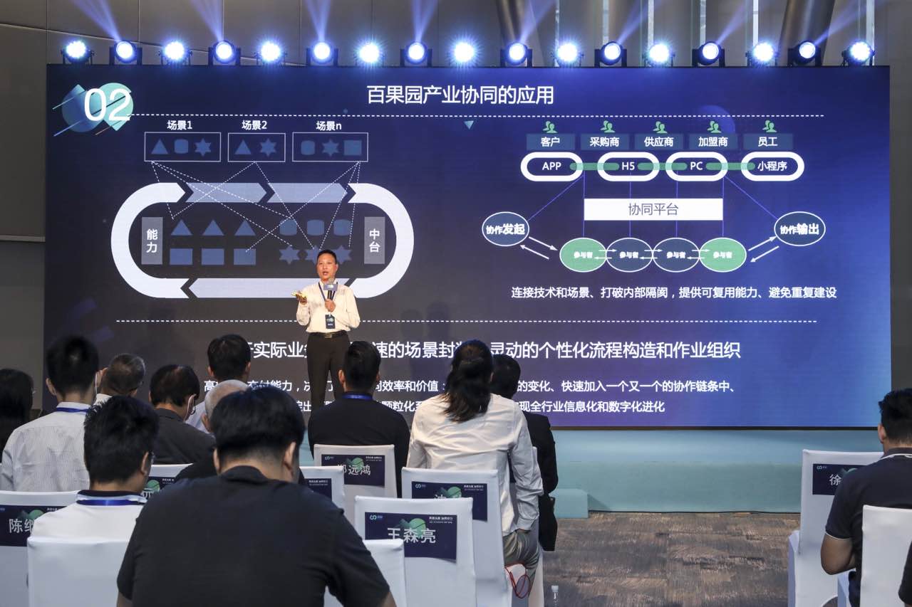 “雁陣”協(xié)同平臺通過SaaS、APaaS組建和iPaaS,將場景應(yīng)用和任務(wù)驅(qū)動完美地連接在了一起。百果園集團副總裁徐永劍表示,“連接型”才是以前傳統(tǒng)OP軟件時代的弱項,是新SaaS產(chǎn)品的甜區(qū)。作為“雁陣”協(xié)同平臺上的業(yè)務(wù)生態(tài)之一“百果園”,便是將其在生鮮領(lǐng)域多年來的IT生態(tài)能力進行開放和共享。
