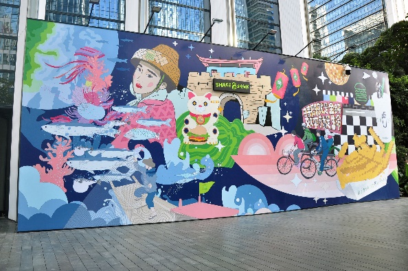 圍擋的室內(nèi)部分采用創(chuàng)新的互動(dòng)形式,由藝術(shù)家現(xiàn)場(chǎng)親自手繪完成的8幅單元涂鴉畫板組合而成。藝術(shù)家用摩登時(shí)尚的波譜藝術(shù),向當(dāng)?shù)刭e客們奉送出中國(guó)傳統(tǒng)的祝福及Shake Shack的活力熱情。