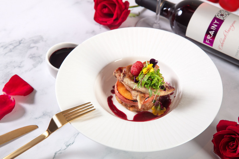 共譜濃情蜜意之夜,怎少得了甜品加乘。酒店餅房行政總廚趙偉以當(dāng)季時(shí)令水果搭配馥郁絲滑的上等巧克力等食材,精心呈獻(xiàn)包括覆盆子蜜桃蛋糕、草莓荔枝蛋糕、咖啡白巧克力櫻桃蛋糕、玫瑰花茶紅酒布丁杯等8款作品。此外,位上菜品新增香煎鵝肝配紅酒焦糖蘋果和藍(lán)莓紅酒汁及中式牛奶燉花膠糖水,中西風(fēng)味相輔相成,都將成就獨(dú)特的美味記憶。當(dāng)天現(xiàn)場將會(huì)有小提琴手駐場演奏,妙音悅耳,為甜蜜之夜增添更多柔情。
