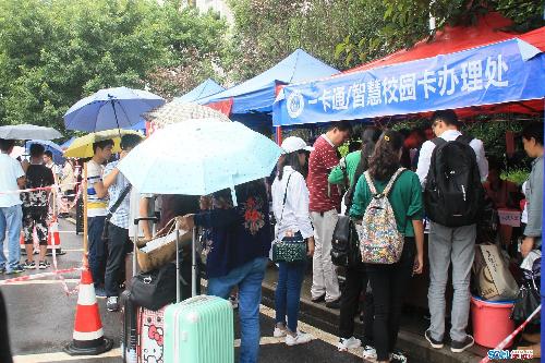 記者隨后跟訪了一名新生報(bào)到入學(xué)的流程。8時(shí)30分,新生小楊在學(xué)門口被學(xué)生志愿者帶到所在院系報(bào)到。報(bào)到有兩種方式,可選擇現(xiàn)場報(bào)到,也可選擇網(wǎng)絡(luò)報(bào)到,小楊選擇的網(wǎng)絡(luò)報(bào)到。