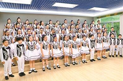 “合唱需要一種力量,叫團(tuán)結(jié)。它給了我一個(gè)快樂(lè)美好的展示自我的舞臺(tái)?!薄皡⒓雍铣獔F(tuán),不但提高了我的音準(zhǔn)和節(jié)奏感,還讓我意識(shí)到團(tuán)隊(duì)精神、組織紀(jì)律性以及集體榮譽(yù)感?!薄耙?yàn)楹铣?,我學(xué)會(huì)了堅(jiān)持,不管在臺(tái)下練多久多累,都為了臺(tái)上絢麗的幾分鐘。”在合唱團(tuán)音樂(lè)教室門口,五彩繽紛的音樂(lè)小報(bào)上展示著孩子們的合唱風(fēng)采,稚嫩的筆觸表達(dá)了孩子們對(duì)合唱的熱愛(ài)。