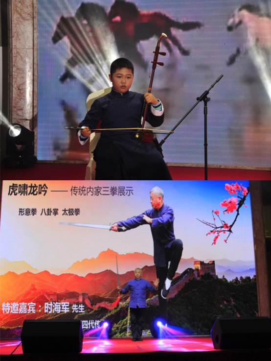 值得一提的是,主辦方還邀請到兩位特別嘉賓助力演出。其一是小小“嶺二代”嚴嘉一小朋友的二胡獨奏,他以一曲惟妙惟肖的《賽馬》,將中大嶺南的傳承精神揮灑得淋漓盡致;另外一位,則是深圳校友會鼎力邀請的孫氏內(nèi)家拳第四代傳人時海軍先生,他帶來了難得一見的傳統(tǒng)內(nèi)家功夫表演《虎嘯龍吟》。