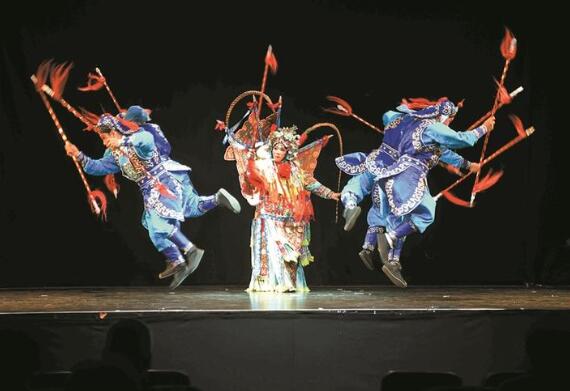 2 在新橋文化藝術(shù)中心——粵劇場(chǎng)排練粵劇穆桂英角色。