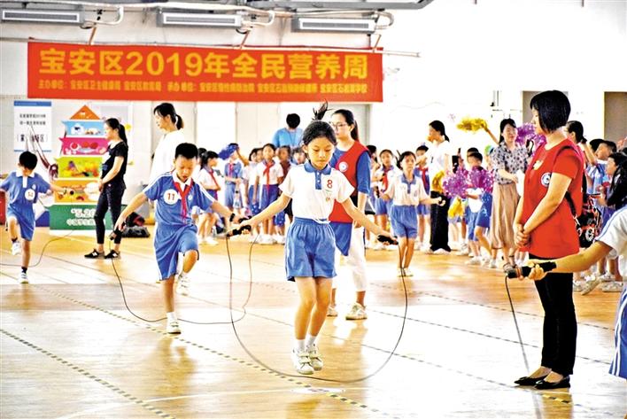 寶安日報5月21日訊 你每天運(yùn)動夠60分鐘了嗎?每天都有吃蔬菜水果嗎?如今,已有越來越多的人重視營養(yǎng)、運(yùn)動與人體健康的關(guān)系,每年的5月20日是中國學(xué)生營養(yǎng)日,今年的主題是“營養(yǎng)+運(yùn)動,攜手護(hù)視力”。5月20日下午,寶安區(qū)2019年全民營養(yǎng)周暨“5·20”中國學(xué)生營養(yǎng)日在石巖湖學(xué)校舉行。