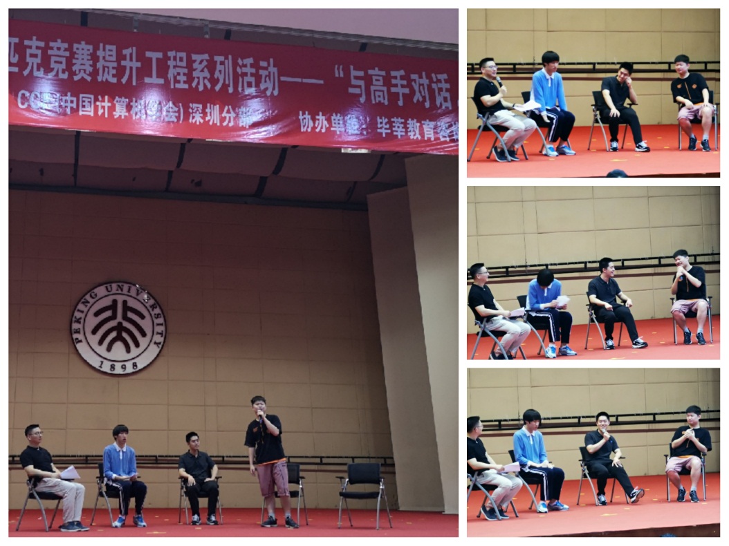 本次活動除了邀請周楷文同學(xué)親臨現(xiàn)場之外,還邀請了雅禮中學(xué)正高級教師,為雅禮貢獻了9塊IOI金牌的朱全民老師;北京大學(xué)深圳研究生院計算機專業(yè)雷凱副教授;雅禮中學(xué)畢業(yè),通過信息學(xué)競賽保送到北京大學(xué)信息科學(xué)與技術(shù)學(xué)院計算機專業(yè)就讀本科以及研究生的章嘉晨同學(xué),國際大學(xué)生信息學(xué)競賽(ICPC)區(qū)域賽金獎、報送北京大學(xué)深圳研究生院就讀計算機專業(yè)的陳銳彪同學(xué)。