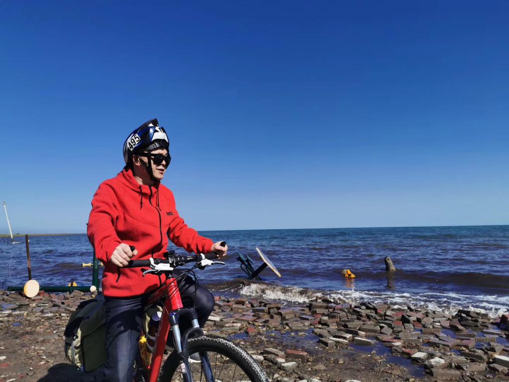 乍到青海湖,湖面浩淼,天空湛藍(lán),水波粼粼,山靜浪涌,花草環(huán)伴,白云微游,鷗俯魚(yú)躍,船客爭(zhēng)影,于是,我寫(xiě)下了“猜1”——是湖非海,似海卻湖;無(wú)風(fēng)浪涌,鷗飛魚(yú)躍;地高云淡,氧薄水藍(lán);有邊無(wú)際,翠草繞環(huán);山云映護(hù),空天以襯;留影流連,此游何處?