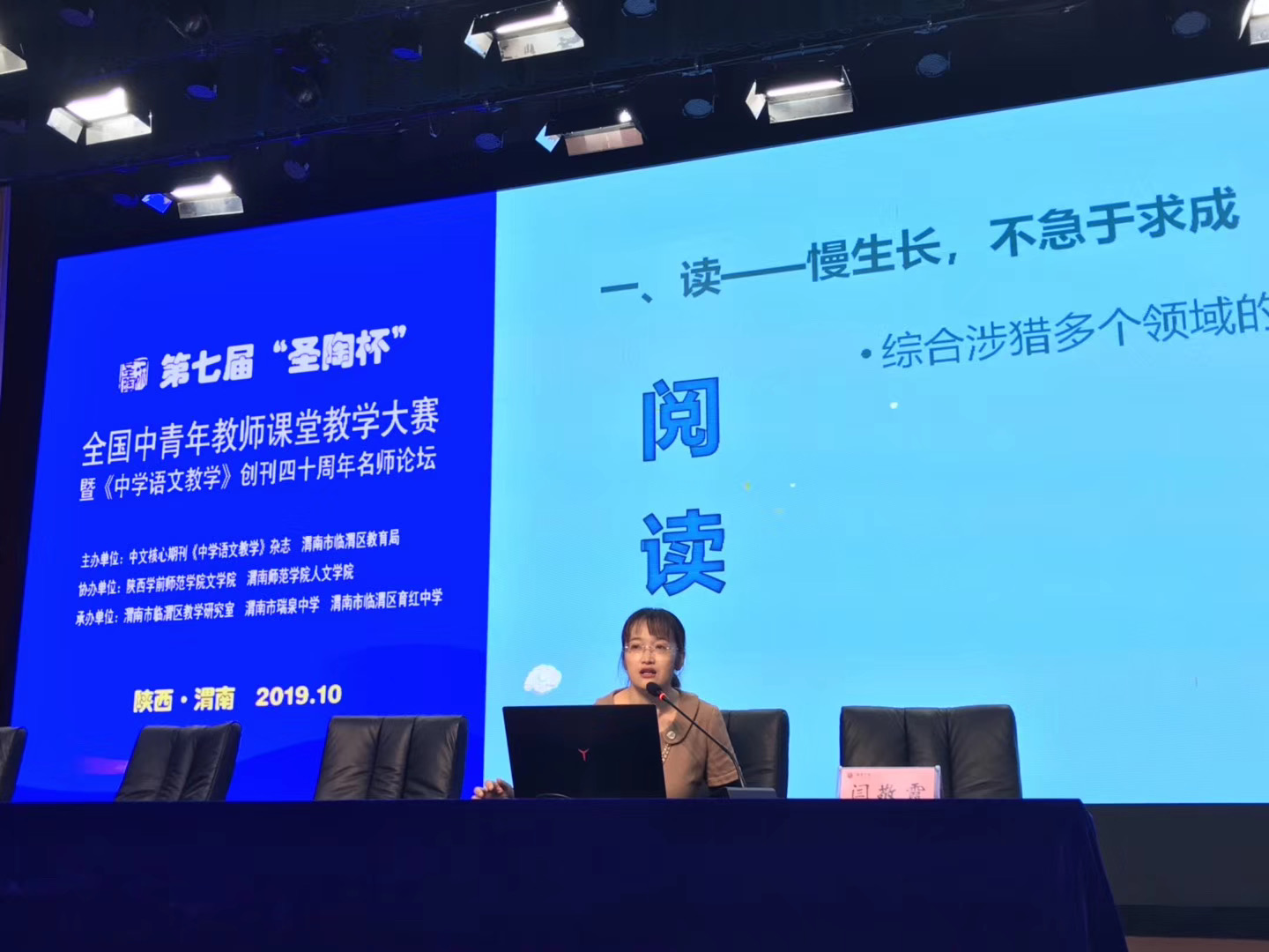 見(jiàn)圳客戶(hù)端·深圳新聞網(wǎng)2019年10月31日訊 日前,第七屆“圣陶杯”全國(guó)中青年教師語(yǔ)文課堂教學(xué)大賽暨《中學(xué)語(yǔ)文教學(xué)》創(chuàng)刊四十周年名師論壇在陜西渭南舉行,深圳市南山區(qū)中國(guó)科學(xué)院深圳先進(jìn)技術(shù)研究院實(shí)驗(yàn)學(xué)校閆敬霞老師受邀出席“名師論壇”,并做主題分享。