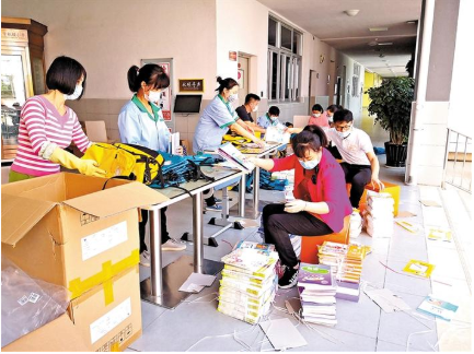 一組數(shù)據(jù)真實(shí)記錄了公明中學(xué)這場教科書免費(fèi)郵寄接力賽:2月28日上午11時(shí)許,郵寄工作全面部署,各班家委開始收集收貨信息;2月29日凌晨2時(shí)30分,初二年級684套教科書全部打包完成;2月29日上午9時(shí)33分,第一位學(xué)子拿到教科書。