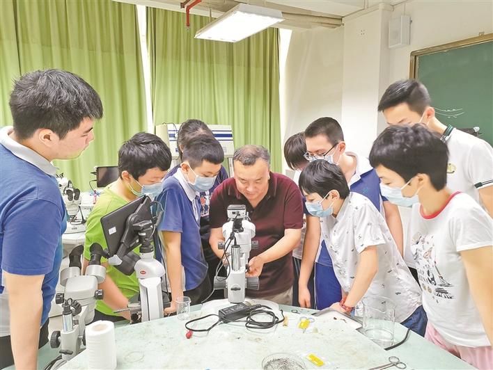 學(xué)生在老師的指導(dǎo)下進(jìn)行實驗。