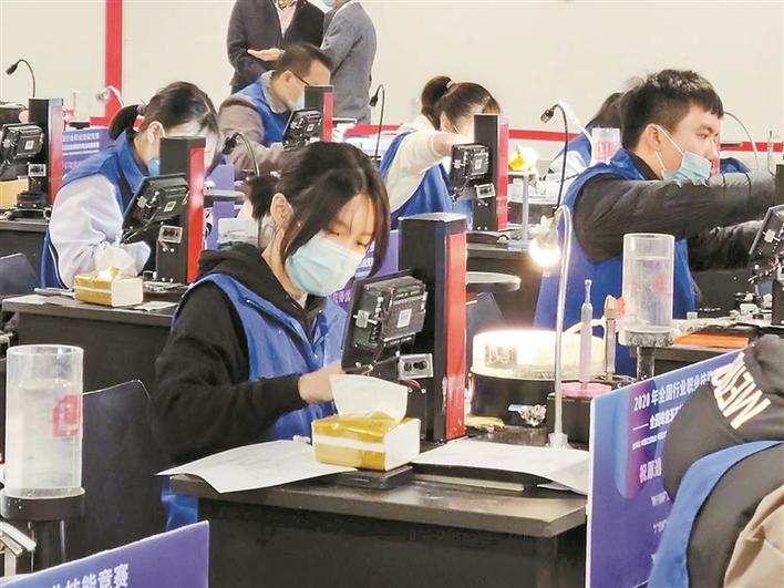 博倫職業(yè)技術學校學生參加珠寶玉石檢測技能大賽。