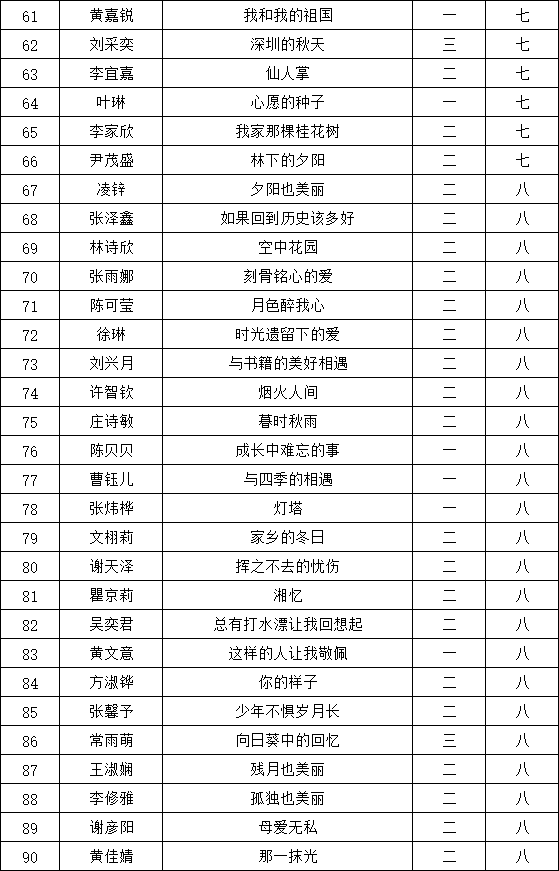 自2021年1月,活動(dòng)征稿啟動(dòng)以來,獲得了深圳市廣大中小學(xué)生、教師、文學(xué)愛好者的熱烈響應(yīng)積極參與,吸引了深圳百余所學(xué)校的上萬人關(guān)注報(bào)名。現(xiàn)公布南二外(集團(tuán))赤灣學(xué)校晉級(jí)復(fù)賽名單如下: