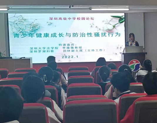 讀特客戶端·深圳新聞網(wǎng)2022年1月8日訊(記者 陳彬)為進(jìn)一步加強(qiáng)校園性騷擾防治,推動(dòng)深圳在“法治城市示范”建設(shè)工作上先行示范,1月8日,深圳市高級(jí)中學(xué)舉辦“青少年健康成長(zhǎng)與防治性騷擾行為”主題論壇,邀請(qǐng)深圳市羅湖區(qū)婦聯(lián)副主席田林、深圳大學(xué)法學(xué)院李薇薇教授、深圳市高級(jí)中學(xué)學(xué)生代表吳雅涵同學(xué)擔(dān)任主講,深圳市高級(jí)中學(xué)國(guó)際部高年級(jí)同學(xué)到場(chǎng)聆聽(tīng)。