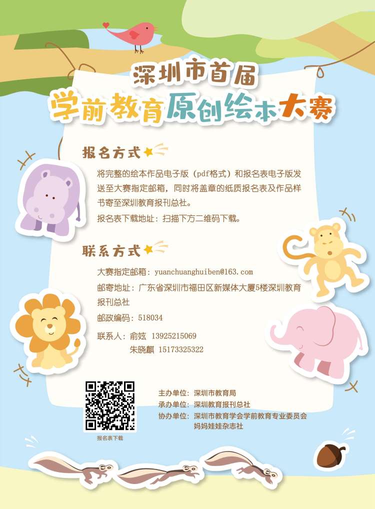 原創(chuàng)繪本大賽的參賽對(duì)象為全市幼兒園教師、在園幼兒及其家長(zhǎng),每所幼兒園的參賽作品數(shù)量沒有限制。有意參賽的選手可掃碼獲取報(bào)名表并了解詳細(xì)要求。作品征集時(shí)間為2022年1月10日-2月28日,3月為初評(píng)與終評(píng)階段,擬于3月底公布評(píng)審結(jié)果并舉行頒獎(jiǎng)儀式。
