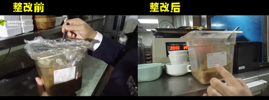 4月19日記者回訪發(fā)現(xiàn)該餐廳負責(zé)人整改態(tài)度積極,針對檢查中指出的問題進行了逐項整改,包括:后廚外專門騰出一個空間擺放食材及工具,不再占用廚房區(qū)域;生熟食已做到分開放置;倉庫擺放整齊有序;消毒柜溫度已可以達到90度以上;新設(shè)置一個粗加工區(qū)與烹調(diào)區(qū)隔離開;被查封的涼菜間重新進行了問題排查與改善。經(jīng)過轄區(qū)食藥監(jiān)管部門的復(fù)評后目前該餐廳的餐飲量化等級已恢復(fù)至B級。該餐廳負責(zé)人也向記者表示,“星期三查餐廳”不僅是檢查,還給予他們對后廚管理的手把手的指導(dǎo),提升很大,后續(xù)將繼續(xù)加強后廚管理,給消費者一個安全健康的就餐環(huán)境保障。