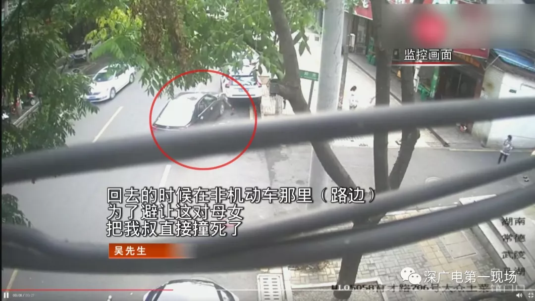 今年6月2日,在湖南常德育才路發(fā)生一起交通事故,一輛無牌小車撞到電動(dòng)車和行人,造成電動(dòng)車駕駛?cè)嗽谒歪t(yī)搶救途中死亡,另兩位行人受傷。肇事司機(jī)周某是一名無證駕駛的90后女性。而這位去世的電動(dòng)車駕駛?cè)司褪菂窍壬挠H叔叔吳雪某。
