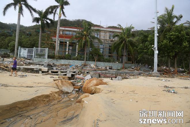小梅沙旅游度假村景區(qū)內(nèi)沙灘海沙被卷走超7萬(wàn)多立方,約2000米的堤岸及道路沖垮,公共、建筑設(shè)施及構(gòu)筑物全部受損,部分完全損毀,13處經(jīng)營(yíng)管理場(chǎng)所損毀,綠化、樹(shù)木等嚴(yán)重破壞,直接經(jīng)濟(jì)損失預(yù)估超過(guò)5000萬(wàn)元。
