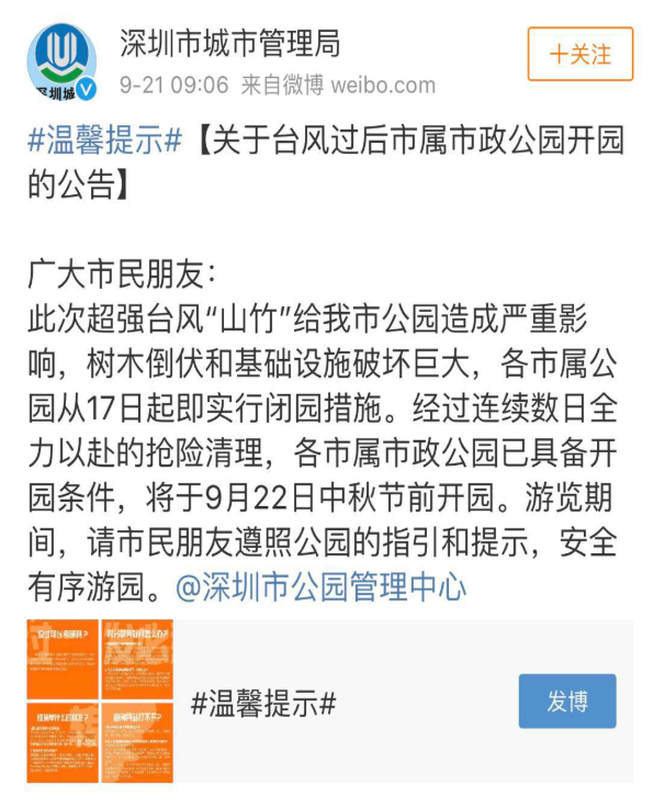 經(jīng)受過臺(tái)風(fēng)洗禮后的深圳市屬公園今天?。。〗K于都開園啦!