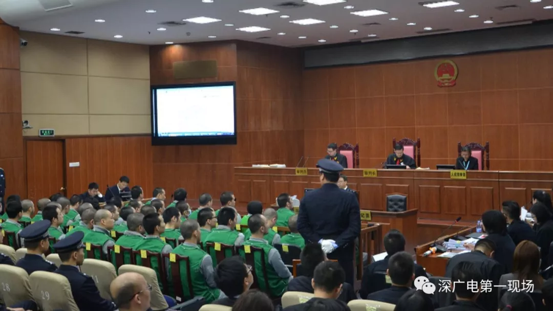 本案庭審時間共持續(xù)4天,其中僅訊問、舉證即持續(xù)2天時間。公訴機關(guān)提起的起訴書達50頁,隨案移送案卷共計48卷,撰寫審查報告共計185頁11萬余字,并制作多份表格數(shù)據(jù)。法院一審判決判決書達119頁。在庭審現(xiàn)場共有50余名辯護律師出庭辯護,多名被告人家屬到場旁聽。因為人數(shù)眾多,深圳市福田區(qū)人民法院將該院最大的第一審判庭座椅進行了拆除改造,才達到開庭條件。