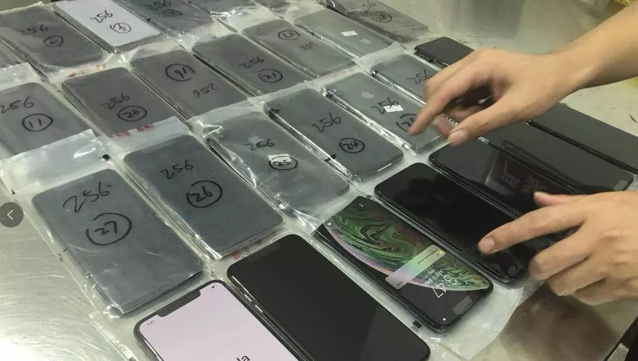 經(jīng)過海關(guān)關(guān)員進一步檢查,在該電動單車電池盒內(nèi)4塊電池中,分別查獲了7部iPhoneXSMax(256G),共計28部,初估案值30多萬元。