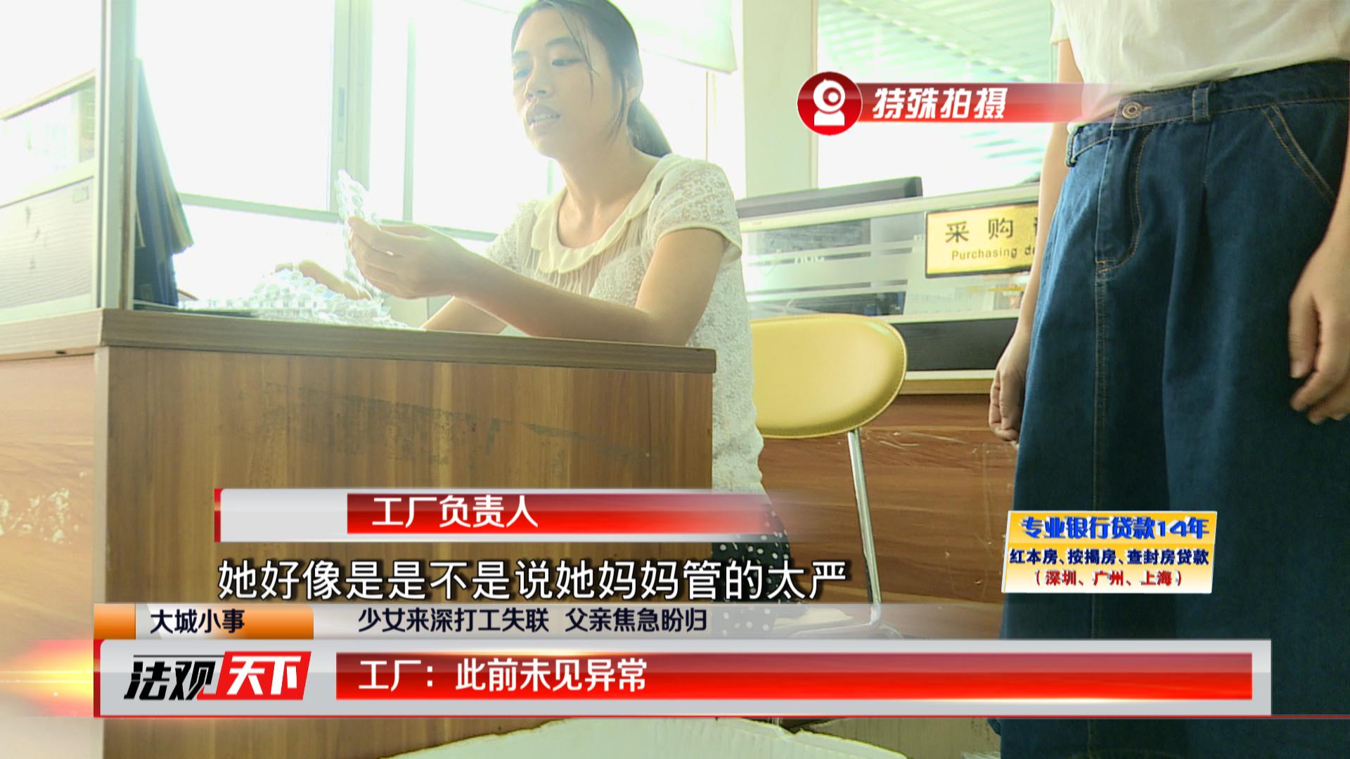 易先生的女兒小琴今年15歲,因?yàn)榍啻浩诒容^叛逆,早早輟學(xué)了,在龍崗的一家工廠打工,沒想到剛工作不久,小琴竟然和同學(xué)一起不辭而別。如今,兩家的家長(zhǎng)都心急如焚。兩個(gè)未成年的女孩,到底能去哪里?她們又為什么要不辭而別呢?