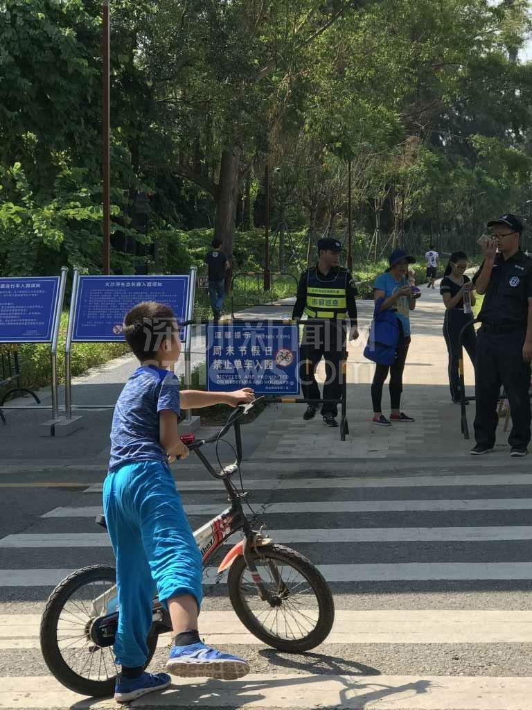 由于周六日深圳灣公園不讓進(jìn),而從蛇口新街到濱海沙河西立交橋這段路在公園內(nèi),該網(wǎng)友只能改從望海路騎至濱海沙河西立交,當(dāng)準(zhǔn)備由濱海沙河西立交騎行到深南沙河西立交時(shí),又被告知這條騎行道同樣在深圳灣公園管轄范圍內(nèi),不準(zhǔn)進(jìn)。最后,網(wǎng)友只能帶著孩子沿沙河西路極其狹窄且危險(xiǎn)的小道騎行到深南大道,再接著騎到深南沙河西,最終才到達(dá)大沙河公園(大沙河?xùn)|側(cè)的沿岸)。