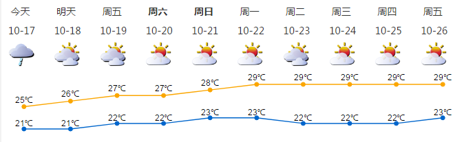 我市陰天間多云,有小雨;氣溫21-26℃;東北風(fēng)2-3級;相對濕度70%-95%
