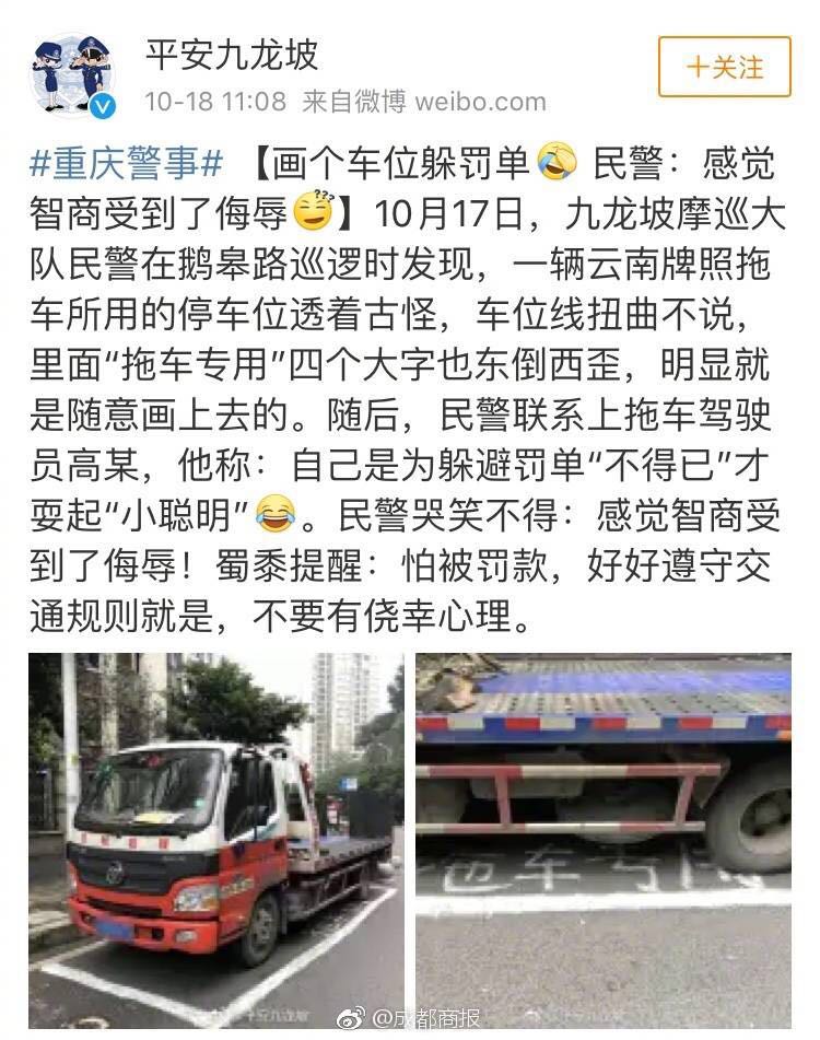 一貨車司機為躲避罰單,自己畫了個車位