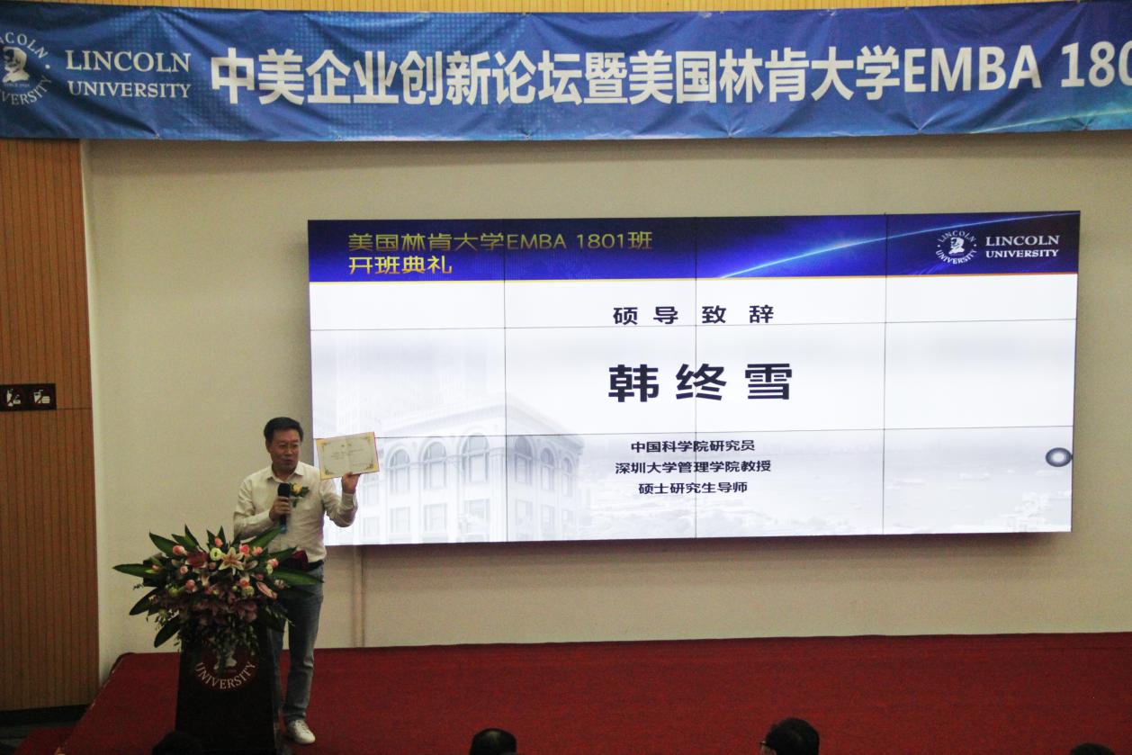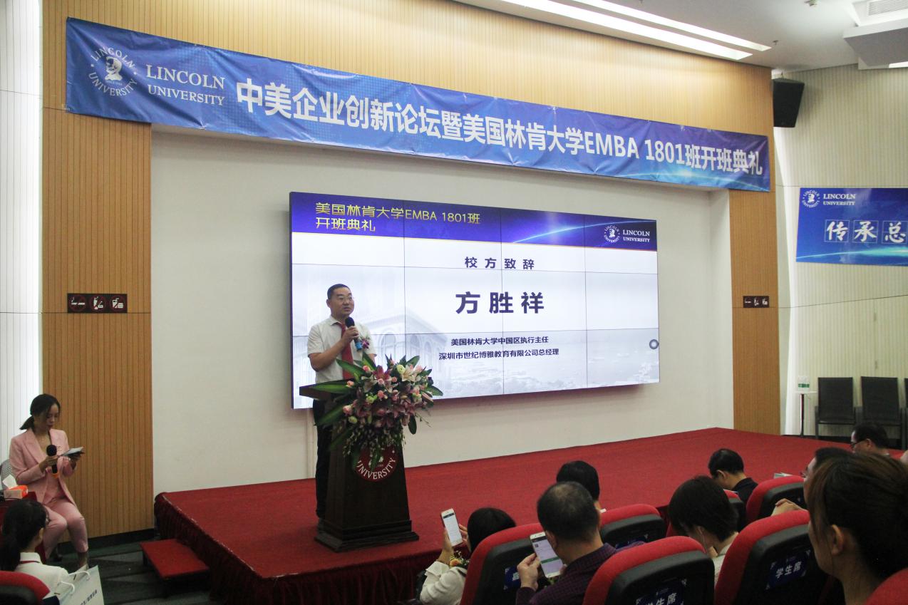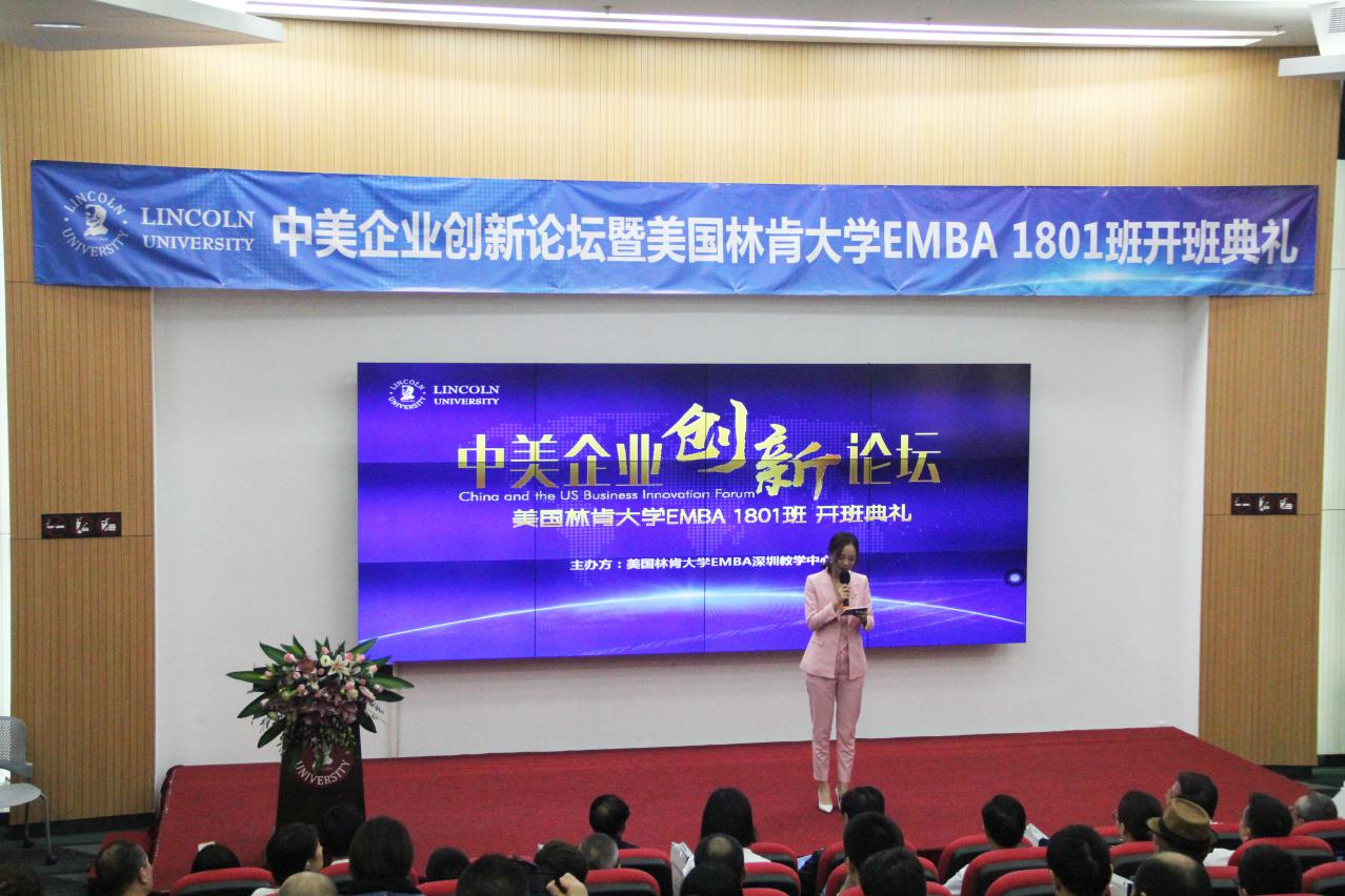 深圳新聞網(wǎng)訊  10月27日上午,由美國(guó)林肯大學(xué)EMBA深圳教學(xué)中心舉辦的《中美企業(yè)創(chuàng)新論壇》暨美國(guó)林肯大學(xué)EMBA1801班開(kāi)班典禮,在深圳科技園香港科技大學(xué)報(bào)告廳舉行。論壇邀請(qǐng)了美國(guó)林肯大學(xué)校方代表?xiàng)畛缢嚥┦?、方勝祥先生、美?guó)加州州立大學(xué)計(jì)算機(jī)系正教授 陶翼青 、中科院研究員韓終雪教授出席。美國(guó)林肯大學(xué)EMBA1801班的同學(xué)們、來(lái)自深圳教育行業(yè)、中國(guó)企業(yè)家代表 以及 媒體記者等160多位嘉賓 參加活動(dòng) 。