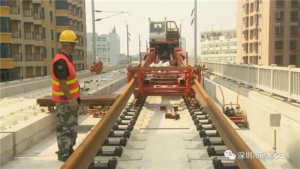 鋪軌機(jī)把長(zhǎng)軌放入無碴道床就位