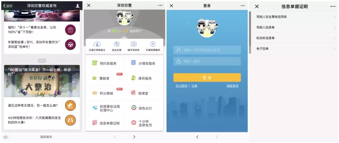 搜索公眾號(hào)“深圳交警” →登錄星級(jí)用戶 →選擇“信息單據(jù)證明” →選擇需要打印的證明類型