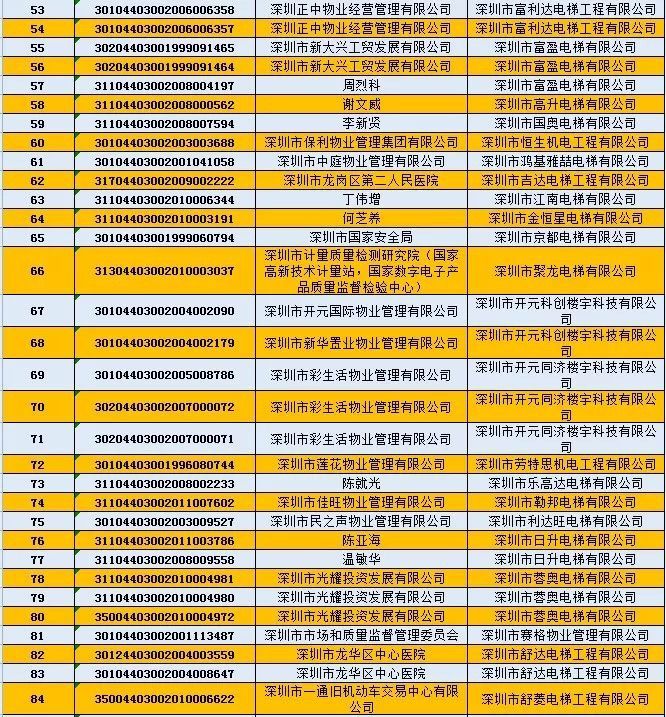不合格電梯維保單位為:1、深圳市誠禾機(jī)電設(shè)備有限公司;2、深圳市通宇電梯有限公司;3、深圳市安眾電梯工程有限公司;4、深圳市蓉奧電梯有限公司;5、清遠(yuǎn)市中日富士電梯有限公司;6、富士通(深圳)有限公司。