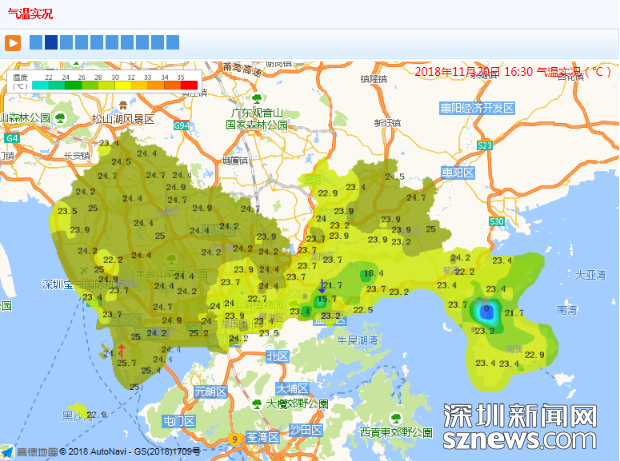 市氣象局發(fā)布?xì)鉁貙崨r(數(shù)據(jù)更新于11月20日16時30分)