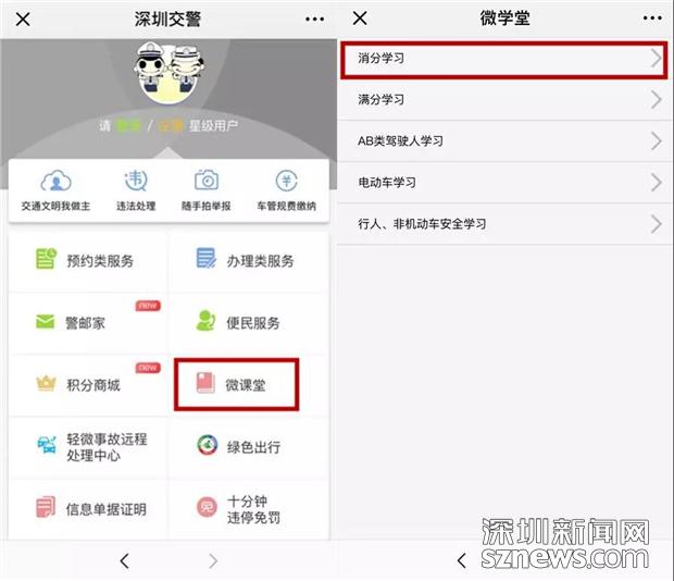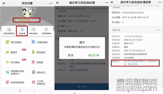 早在2015年,星級(jí)用戶平臺(tái)就上線了“減分學(xué)習(xí)”功能,通過(guò)減分學(xué)習(xí),一個(gè)記分周期最多可以使用18分駕駛證記分。通過(guò)減分學(xué)習(xí)獲得了6分,該怎么處理交通違法呢?11月份,深圳交警在星級(jí)用戶平臺(tái)推出了“使用減分學(xué)習(xí)獲得的記分在線處理交通違法”業(yè)務(wù)。