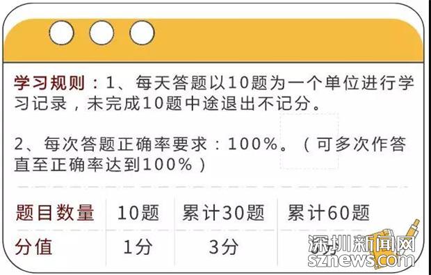 值得注意的是,申請(qǐng)減分學(xué)習(xí)的駕駛必須符合駕駛證準(zhǔn)駕車型為C1、C2、C3,車輛所屬地和違法發(fā)生地均為深圳,累計(jì)記分≤9分(一次性記滿12分,或已經(jīng)累計(jì)達(dá)到12分的駕駛?cè)顺猓┑臈l件,符合這些條件的即可進(jìn)入“深圳交警星級(jí)用戶——微課堂——消分學(xué)習(xí)——答題攢分”進(jìn)行減分學(xué)習(xí)。每天答題以10題為一個(gè)單位進(jìn)行學(xué)習(xí)記錄,未完成10題中途退出不記分,每次答題正確率要求為100%,即答對(duì)10題可獲得1分,累計(jì)答對(duì)30題可獲得3分,累計(jì)答對(duì)60題可獲得6分。
