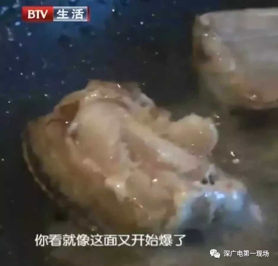 實驗結(jié)果顯示,未浸泡福爾馬林的帶魚,經(jīng)過高溫油炸一切正常,并未產(chǎn)生任何爆裂“開花”的情況。然而,浸泡了福爾馬林的帶魚,在下鍋后不久,就爆裂“開花”。