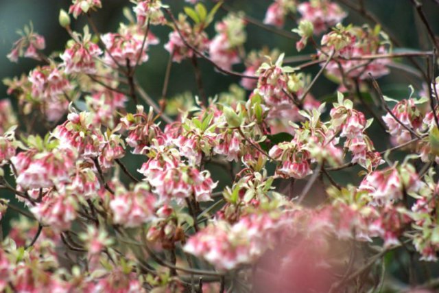 吊鐘花朵朵成束,好似鈴鐺吊掛,花粉紅白色,妖嫩媚人,晶瑩醒目,花期正值元旦、春節(jié),長期以來作為吉祥的象征,為嶺南鄉(xiāng)土名花。資料顯示,早在清代中葉,廣東一帶已有將吊鐘作為年花的習(xí)俗。清代屈大均的《廣東新語》記載:"吊鐘花并未折下,能耐久,臘冬多賣于街,土人市以度歲,取其置中不萎也。"吊鐘花紅的稱為"金鐘",白的叫做"銀鐘",朵朵彎垂,似無數(shù)的小鈴鐺在空中搖曳。古詩中所詠的"天香新綠一叢叢,金鐘深藏一片紅。風(fēng)吹銀鈴香陣陣,勝過百花鬧新春"就是對(duì)吊鐘花的生動(dòng)寫照。